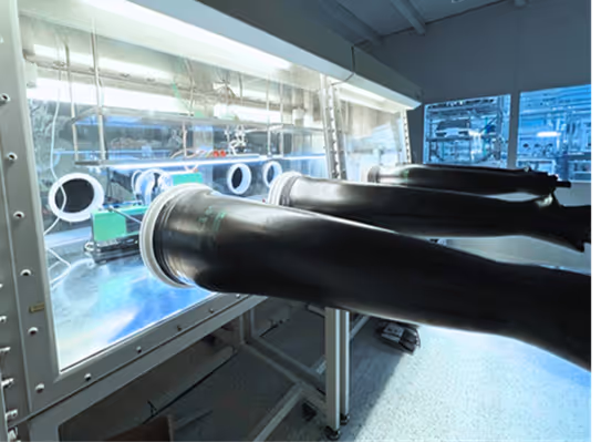 Two glove boxes with argon atmospheres ensure contamination-free cell assembly and disassembly under conditions with less than one part per million (ppm) oxygen and moisture. The laboratory also features seven meters of chemical workspace for sample preparation. To further expand capacity, two additional climate-controlled high-performance test cabinets are planned, enabling the parallel testing of 300 cells. An automated production line for pouch cells will also be integrated to allow faster and more reproducible scaling of cell designs.